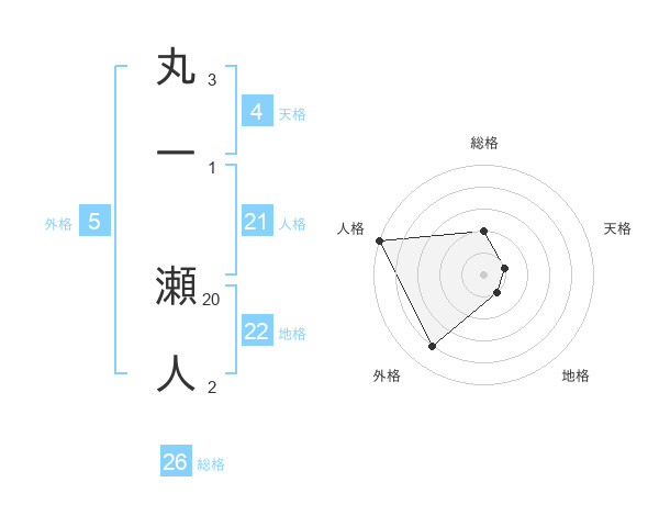 丸一 瀬人さんの総格は26画の2点!