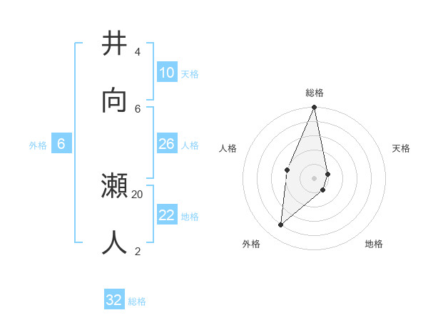 井向 瀬人さんを姓名の画数から五運を鑑定