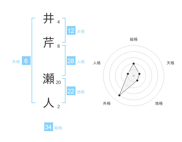井芹 瀬人さんの天格は12画の1点!