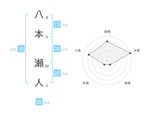 八本 瀬人さんを姓名の画数から五運を鑑定