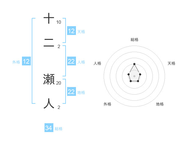 十二 瀬人さんの地格は22画の1点!