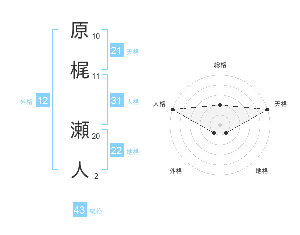 原梶 瀬人さんを姓名の画数から五運を鑑定
