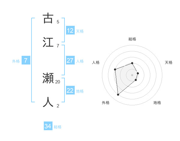 古江 瀬人さんの総格は34画の2点!