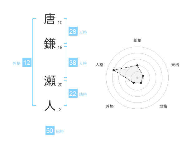 唐鎌 瀬人さんを姓名の画数から五運を鑑定