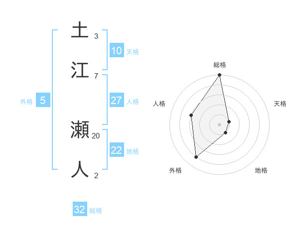 土江 瀬人さんの総格は32画の5点!