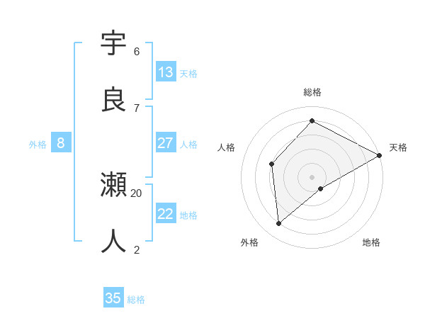 宇良 瀬人さんを姓名の画数から五運を鑑定