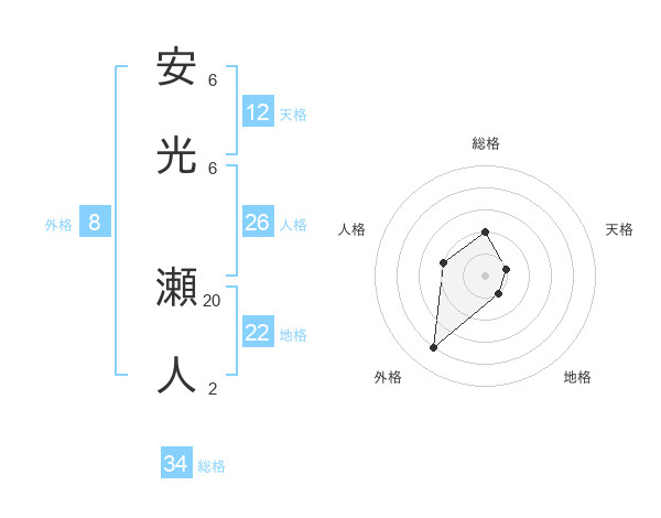 安光 瀬人さんの総格は34画の2点!