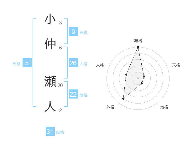 小仲 瀬人さんを姓名の画数から五運を鑑定