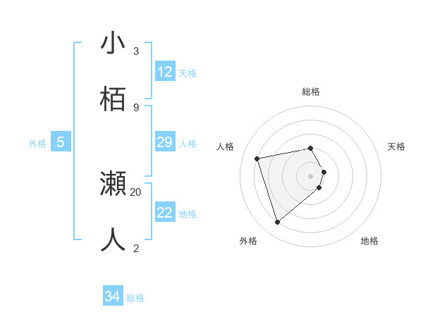 小栢 瀬人さんの天格は12画の1点!