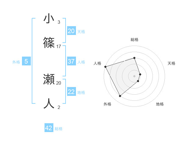 小篠 瀬人さんを姓名の画数から五運を鑑定