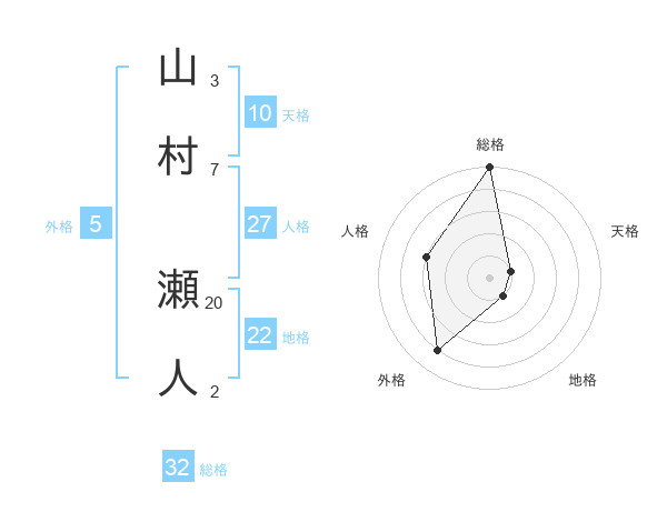 山村 瀬人さんを姓名の画数から五運を鑑定