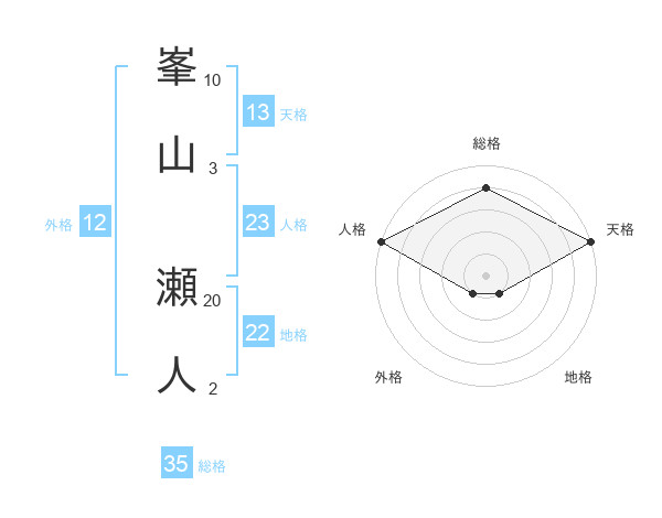 峯山 瀬人さんの総格は35画の4点!