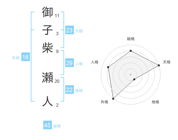 御子柴 瀬人さんを姓名の画数から五運を鑑定
