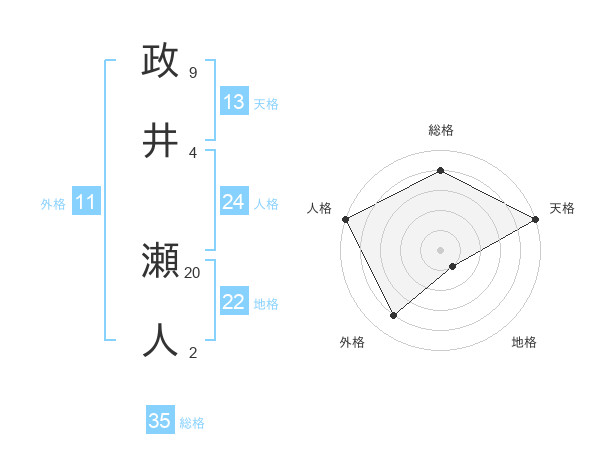 政井 瀬人さんの総格は35画の4点!