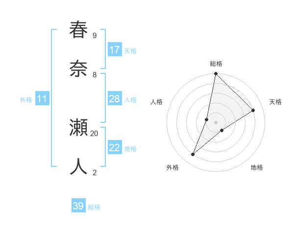 春奈 瀬人さんを姓名の画数から五運を鑑定