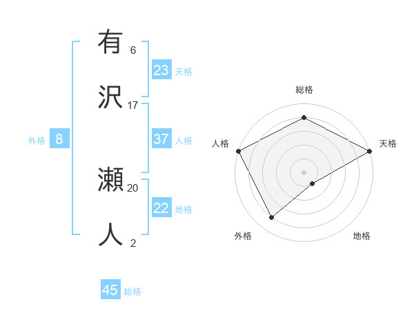 有沢 瀬人さんの天格は23画の5点!