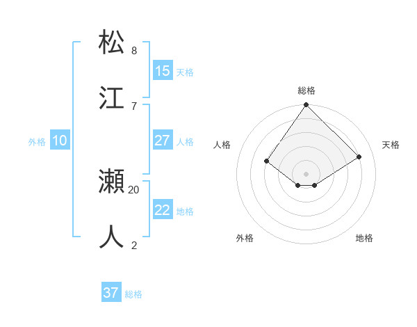 松江 瀬人さんの総格は37画の5点!