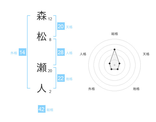 森松 瀬人さんの天格は20画の1点!