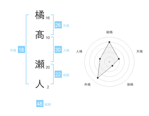 橘髙 瀬人さんの総格は48画の4点!