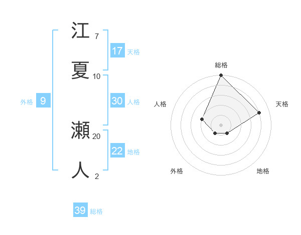 江夏 瀬人さんの総格は39画の5点!