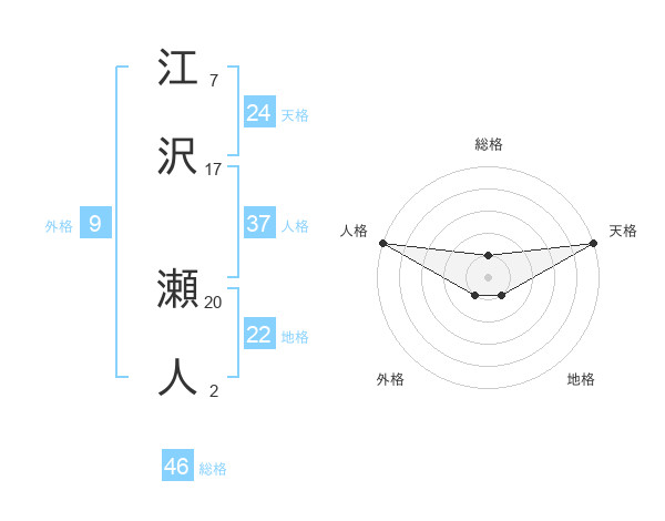 江沢 瀬人さんを姓名の画数から五運を鑑定