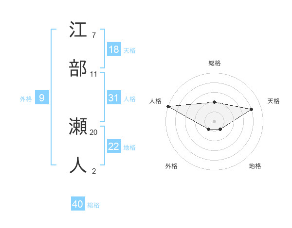 江部 瀬人さんの総格は40画の2点!