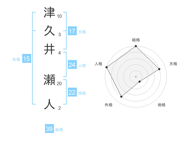津久井 瀬人さんの総格は39画の5点!