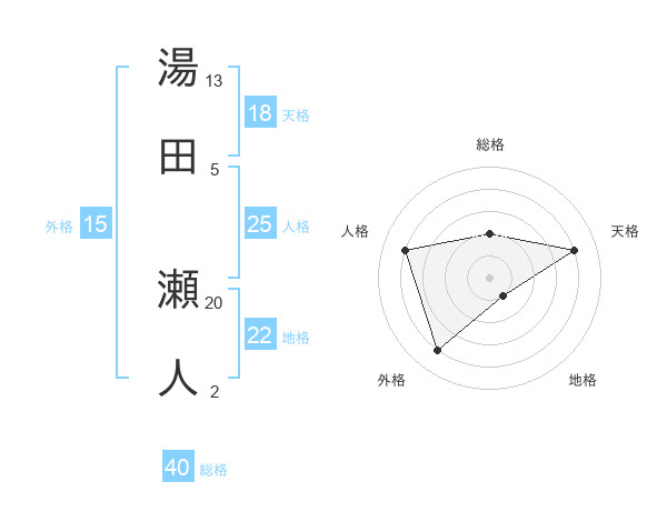 湯田 瀬人さんの総格は40画の2点!
