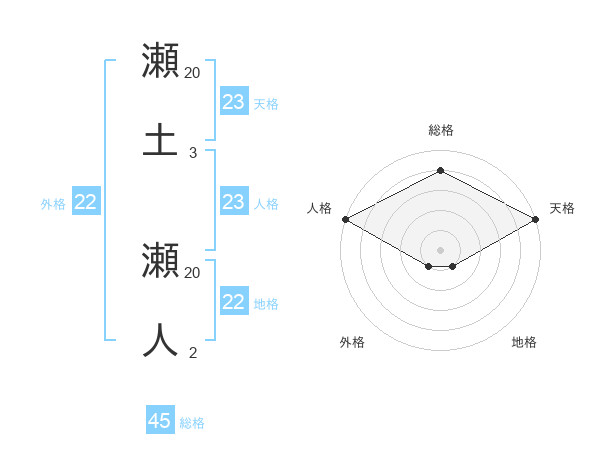 瀬土 瀬人さんの天格は23画の5点!