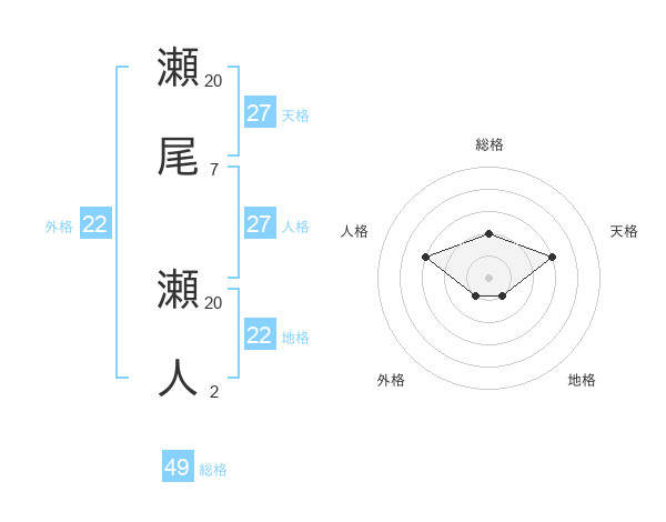 瀬尾 瀬人さんの総格は49画の2点!