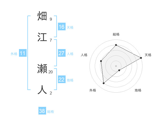 畑江 瀬人さんの総格は38画の4点!