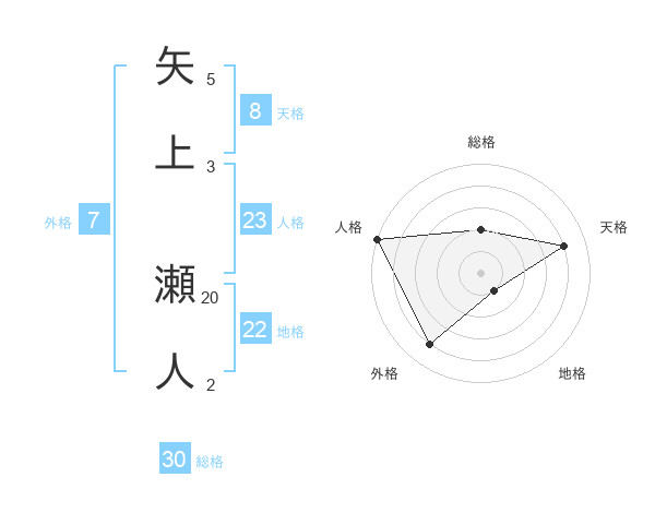 矢上 瀬人さんの総格は30画の2点