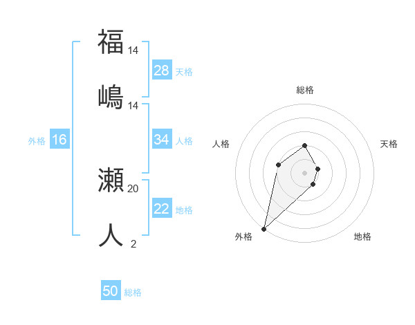 福嶋 瀬人さんを姓名の画数から五運を鑑定