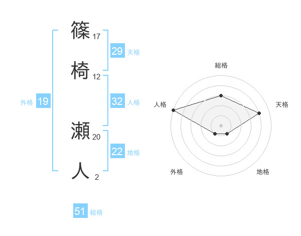 篠椅 瀬人さんの総格は51画の3点!