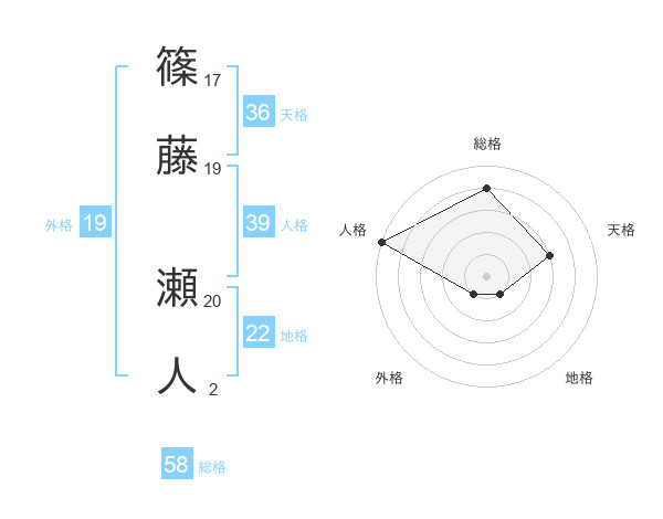 篠藤 瀬人さんの総格は58画の4点!