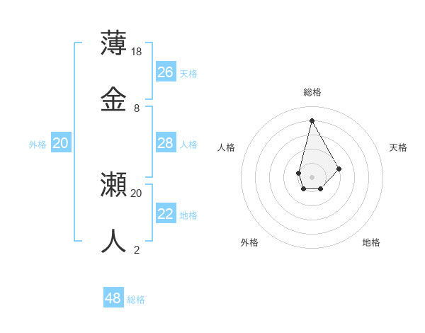 薄金 瀬人さんの総格は48画の4点!