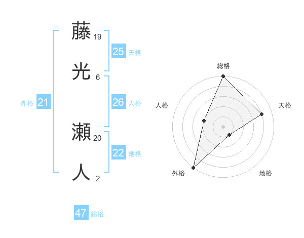 藤光 瀬人さんの総格は47画の5点!