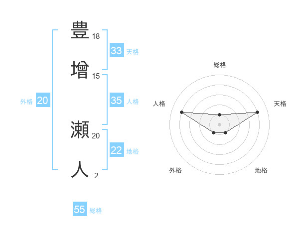 豊增 瀬人さんの総格は55画の1点!