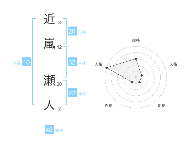 近嵐 瀬人さんの総格は42画の3点!