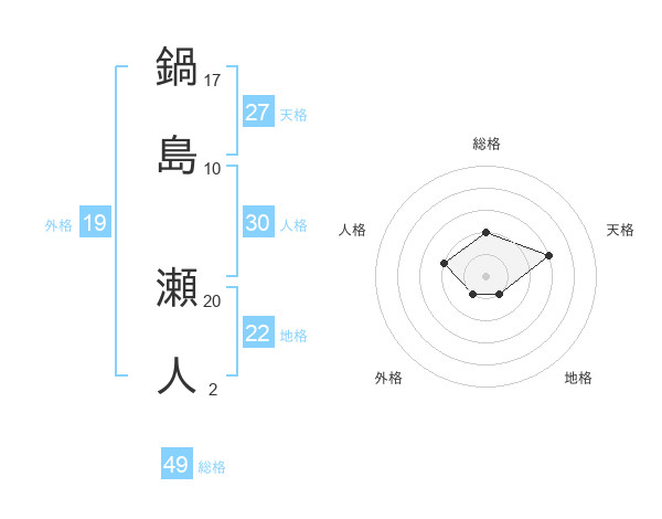 鍋島 瀬人さんの総格は49画の2点!