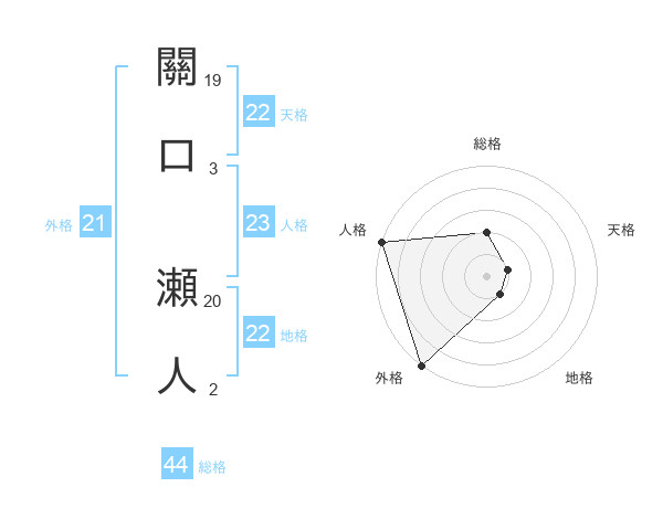 關口 瀬人さんを姓名の画数から五運を鑑定