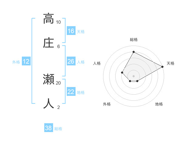 高庄 瀬人さんの総格は38画の4点!