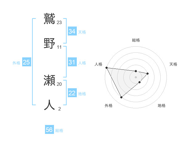 鷲野 瀬人さんを姓名の画数から五運を鑑定