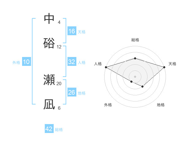 中硲 瀬凪さんの総格は42画の3点!