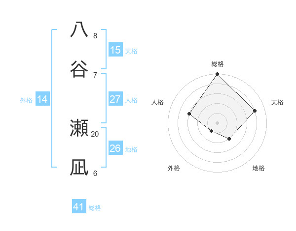 八谷 瀬凪さんの総格は41画の5点!