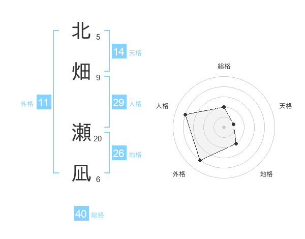北畑 瀬凪さんを姓名の画数から五運を鑑定