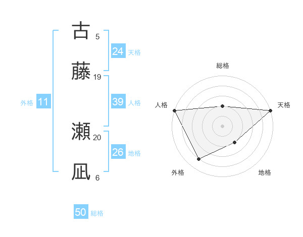 古藤 瀬凪さんの総格は50画の2点!