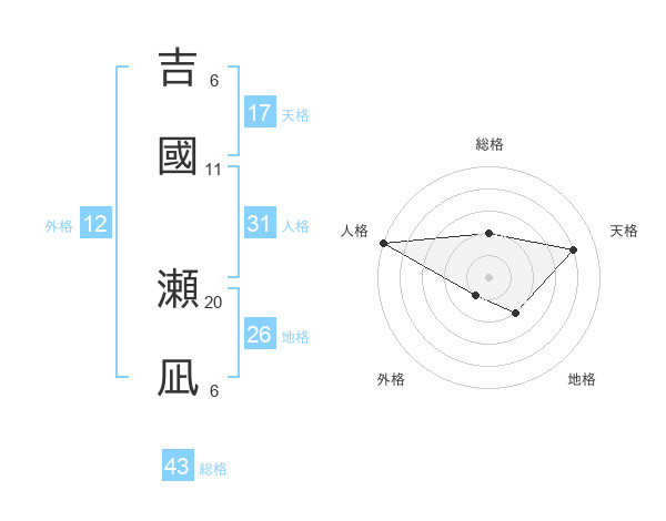 吉國 瀬凪さんの総格は43画の2点!