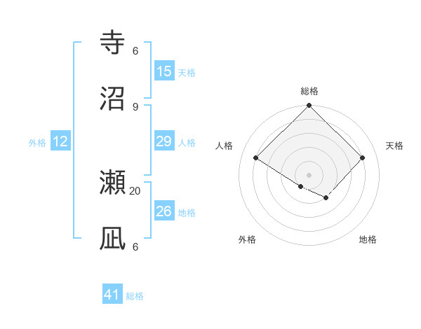 寺沼 瀬凪さんの総格は41画の5点!