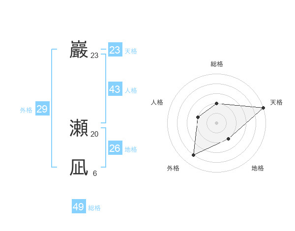 巖 瀬凪さんを姓名の画数から五運を鑑定